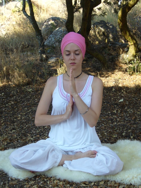 Ojos cerrados y dirigidos al punto del tercer ojo.