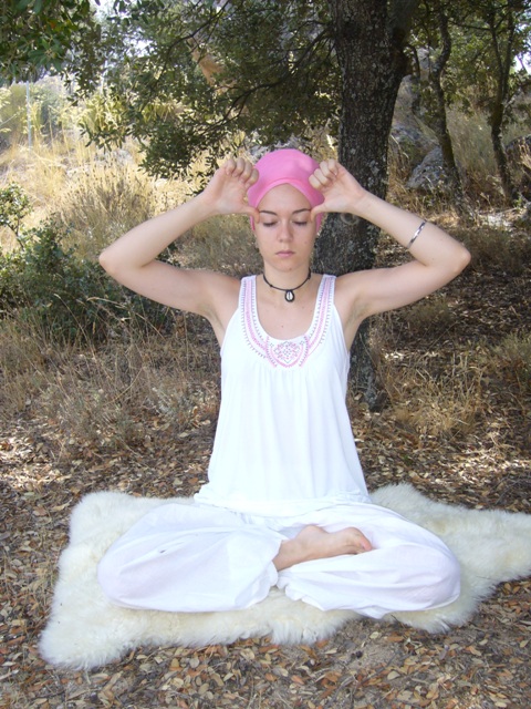 Con los ojos cerrados, concéntrate en el 7º chakra, en la coronilla., y presiona la lengua contra el paladar.